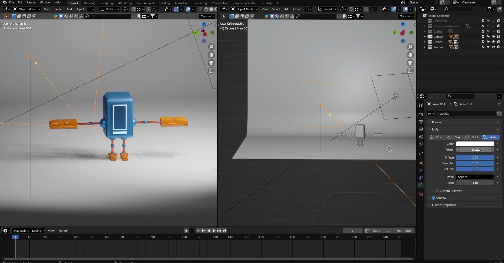 Aprenderás a colocar texturas básicas con el principle shader para darle color y un aspecto metálico a nuestro robot y luego colocaremos distintos tipos de iluminación.